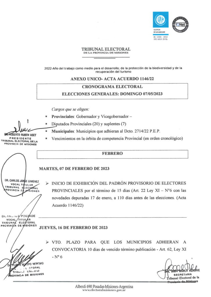CRONOGRAMA ELECTORAL