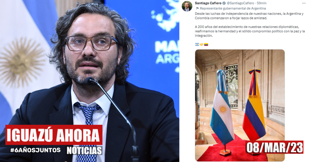 #200Años El canciller Santiago Cafiero celebró hoy el aniversario de los 200 años de relaciones diplomáticas entre Argentina y Colombia, y reafirmó el «sólido compromiso político con la paz y la integración» que tienen ambas naciones.