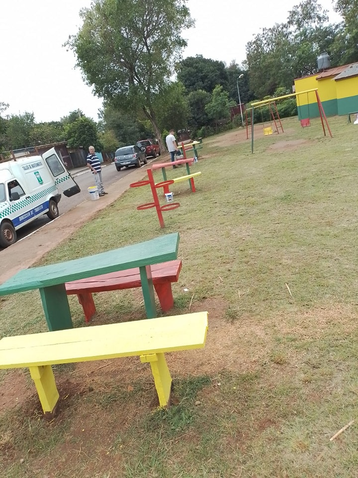A través del Área de Mantenimiento están trabajando en el embellecimiento de la Plaza del Barrio Obrero donde mañana se llevará a cabo el Festival del Reviro.