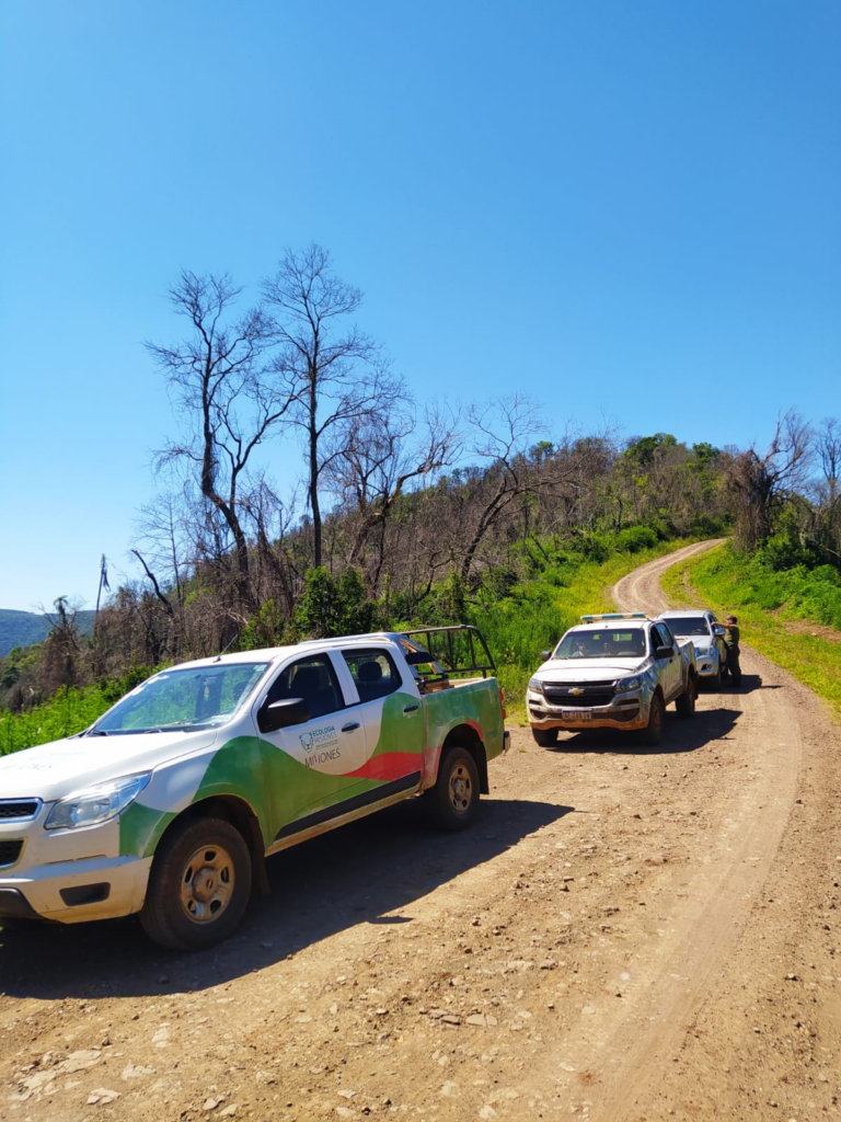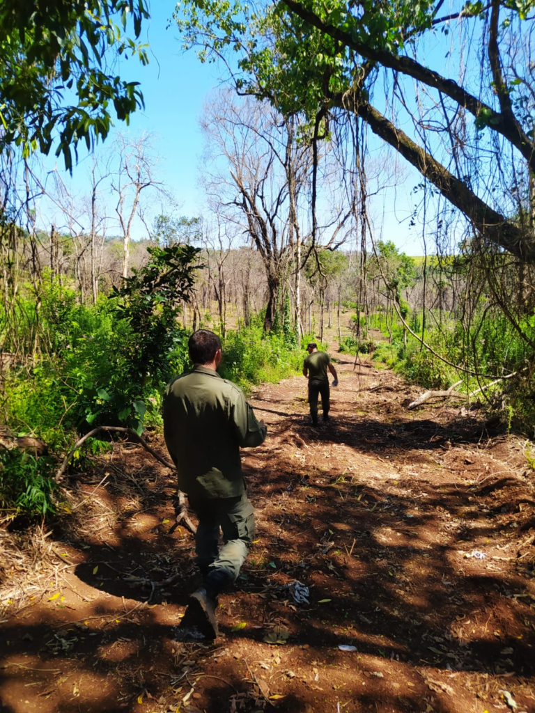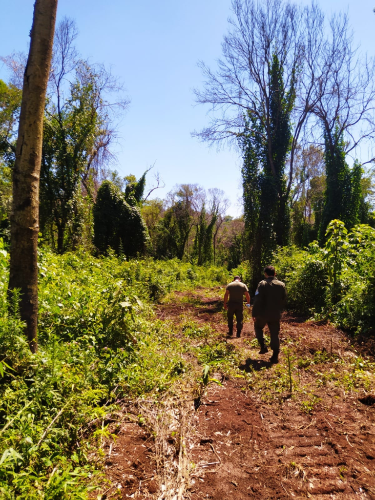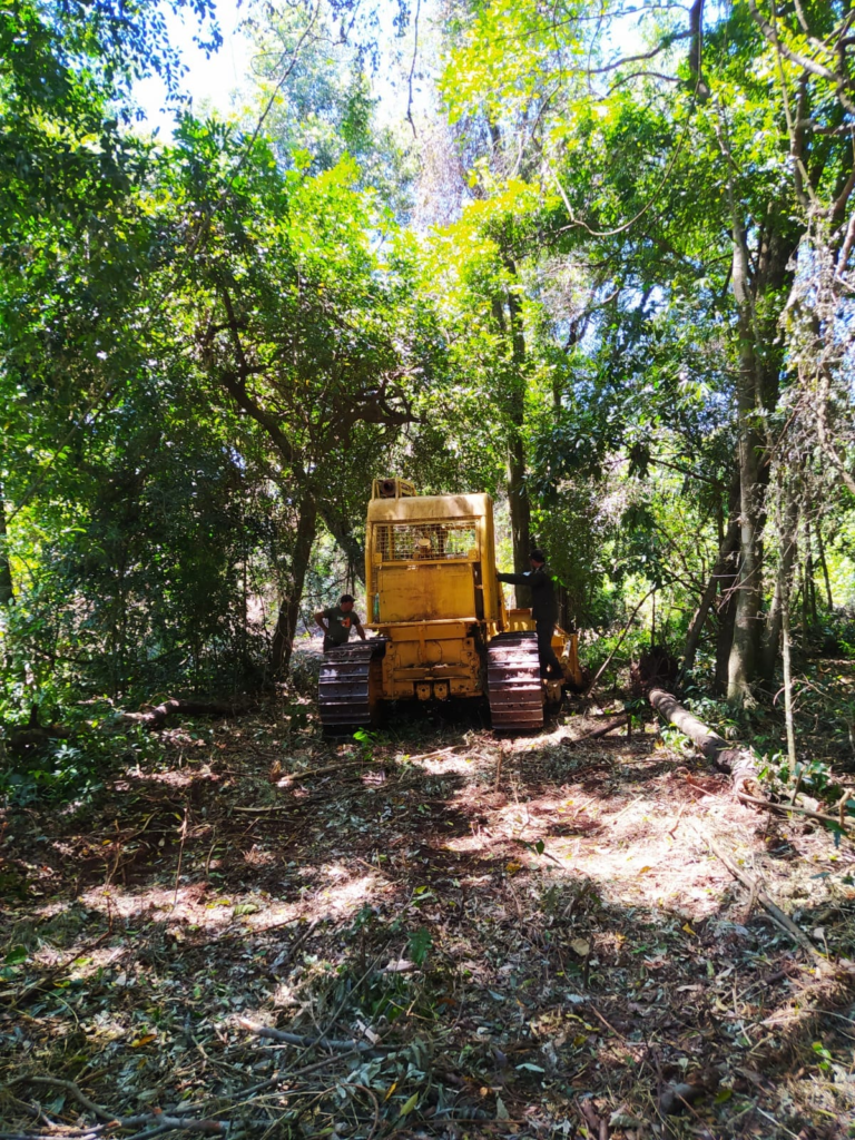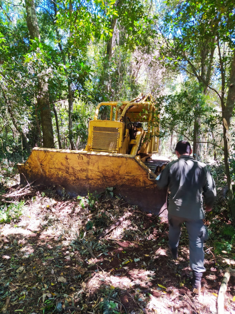 Guardabosques de la Dirección de Control Forestal del Ministerio de Ecología, junto con guardaparques del Parque Provincial Salto Encantado realizaron una inspección en un lote del Valle del Cuñá Pirú, donde se constató la apertura de caminos dañando el monte nativo, realizada con una máquina motoarrastradora encontrada en el lugar.