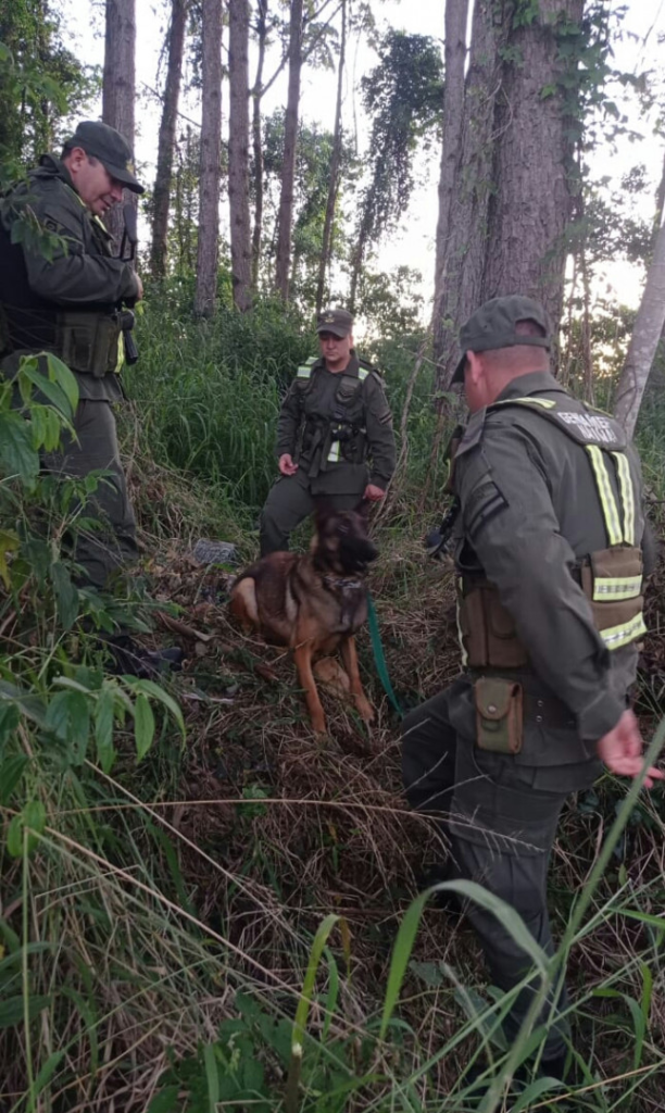 Las tareas de rastrillaje efectuadas en la zona, con el apoyo del can detector de narcóticos, resultó en el hallazgo de 49 bultos ocultos debajo de tierra y pasto.