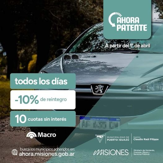 Desde el municipio informa que mediante la resolución Nro 176/2024 SERIE “A”, Iguazú se une al Programa AHORA PATENTE, creado por Decreto del Poder Ejecutivo Provincial.