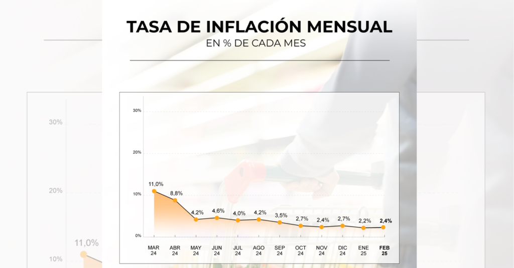 En enero, la inflación fue del 2,2% y para el mes pasado, el mercado esperaba que sea igual o superior a ese número. De hecho, las cifras de las consultoras privadas auguraban una inflación para febrero entre 2,3% y 2,5%.