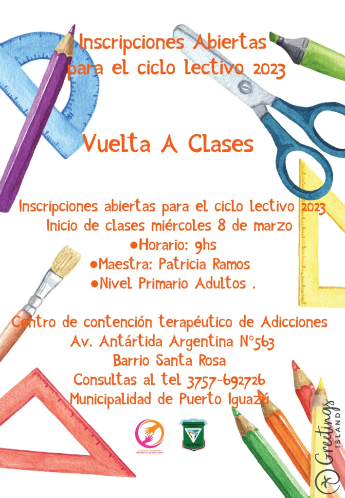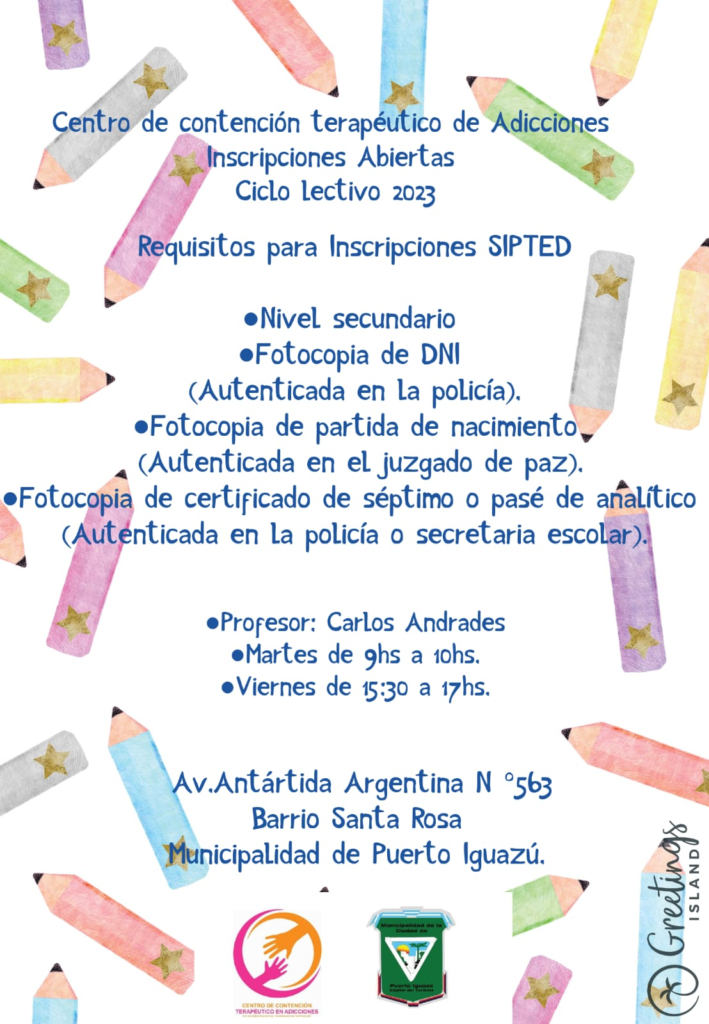 Desde el Centro de Contención Terapéutico de Adicciones, informan que ya se encuentran abiertas las inscripciones para la realización de estudios tanto Primarios como Secundarios para adultos!!
