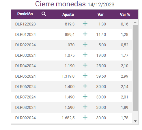 En el marco del dólar futuro hay un leve aumento en el oficial: siendo que para Febrero 2024 ahora se calcula que estaría cerca de los $970.00