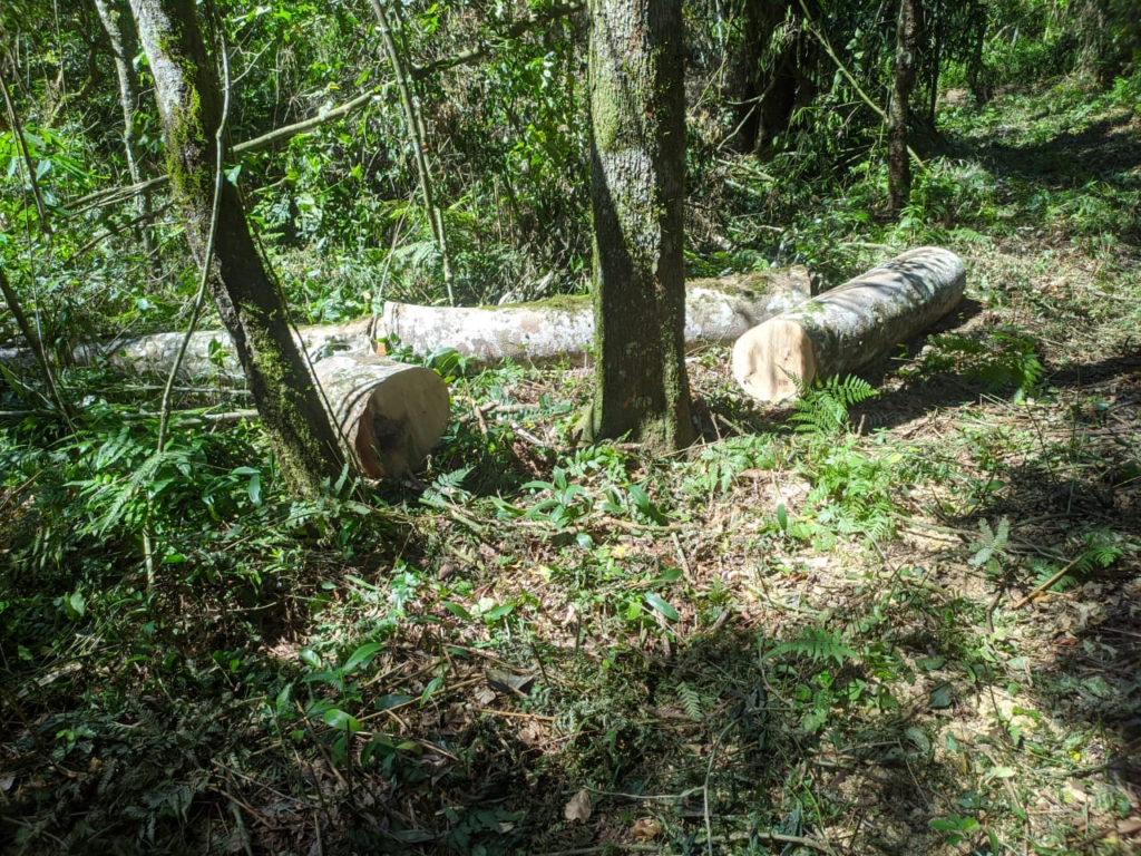 Allí la comisión policial efectivamente, tras un intenso rastrillaje en la zona halló una motosierra y una mochila, asimismo observó cortados dos rollos de la especie loro negro y uno de la especie Cedro, listos para ser trasladados a otro sitio.