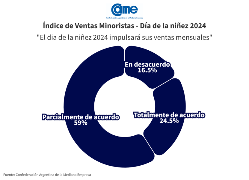 Las ventas minoristas pymes por el Día del Niño cayeron 14,4% frente a la misma fecha del año pasado, medidas a precios constantes. Fue una semana en la que las familias se orientaron a buscar productos económicos o en oferta. Se observó un consumo más cauteloso que el del año anterior, donde las prioridades se orientaron hacia lo esencial y funcional.