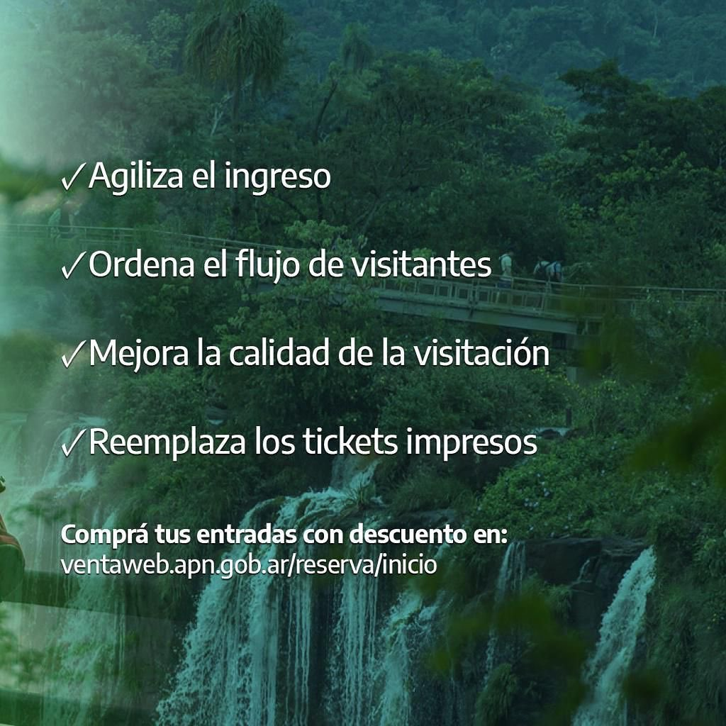 Esta modalidad incentiva el uso del sistema de compra electrónica de tickets de acceso a los Parques Nacionales y servirá, a través de la venta anticipada, para agilizar el ingreso, ordenar los flujos de visitantes y mejorar la calidad de la visitación.