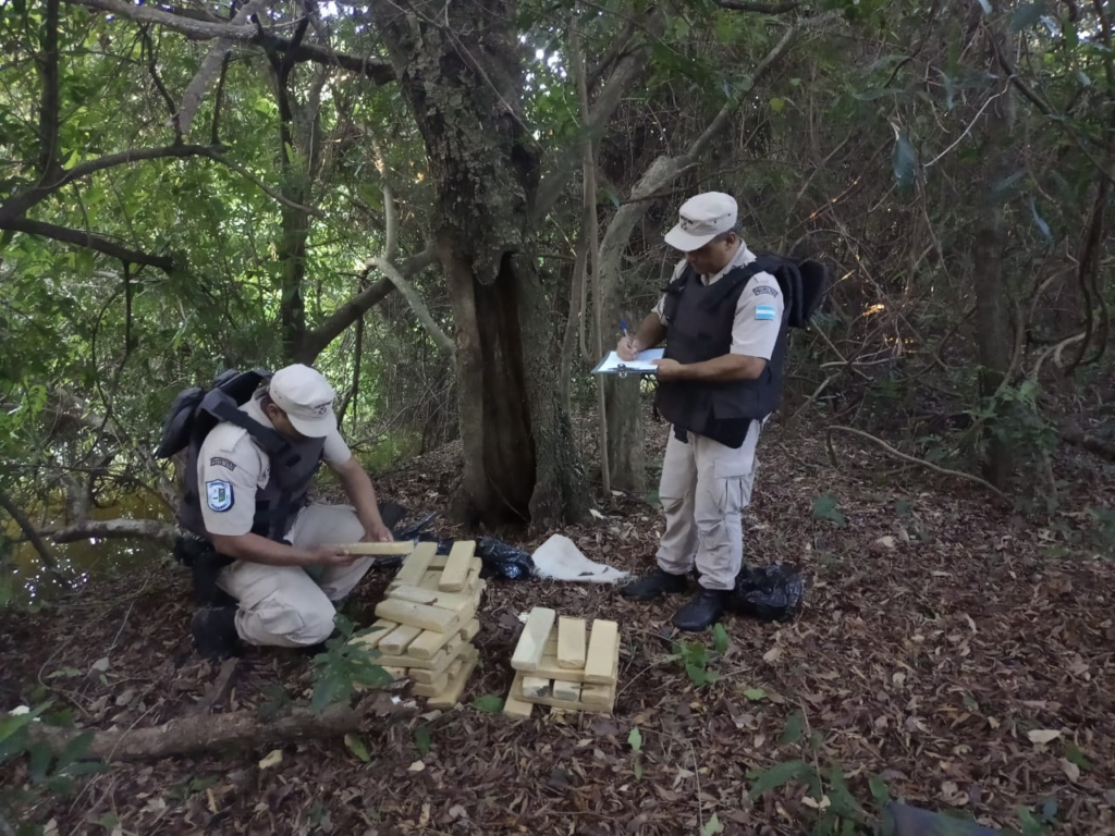 El primer operativo ocurrió a la altura del kilómetro 1.922 del río Paraná, cuando el personal de la Fuerza, que se encontraba realizando un patrullaje terrestre por la zona, observó a una embarcación que estaba en la costa y a varios bultos en sus cercanías.