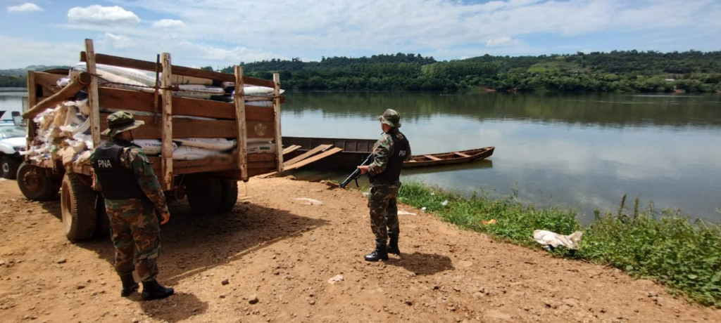 Efectivos de la Prefectura Naval Argentina incautaron un cargamento de más de 13 toneladas de soja y maíz, durante diferentes patrullajes realizados en la ciudad misionera de El Soberbio, en el marco de los controles que se llevan a cabo en la zona de frontera para prevenir el delito.