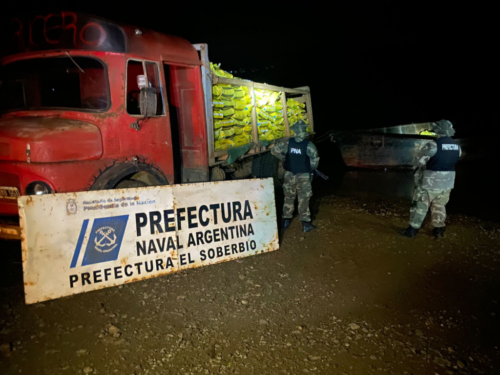 El secuestro fue resultado de un patrullaje terrestre que permitió detectar, a la altura del kilómetro 1150 del río Uruguay, movimientos de carga y descarga de mercadería sobre la ribera.