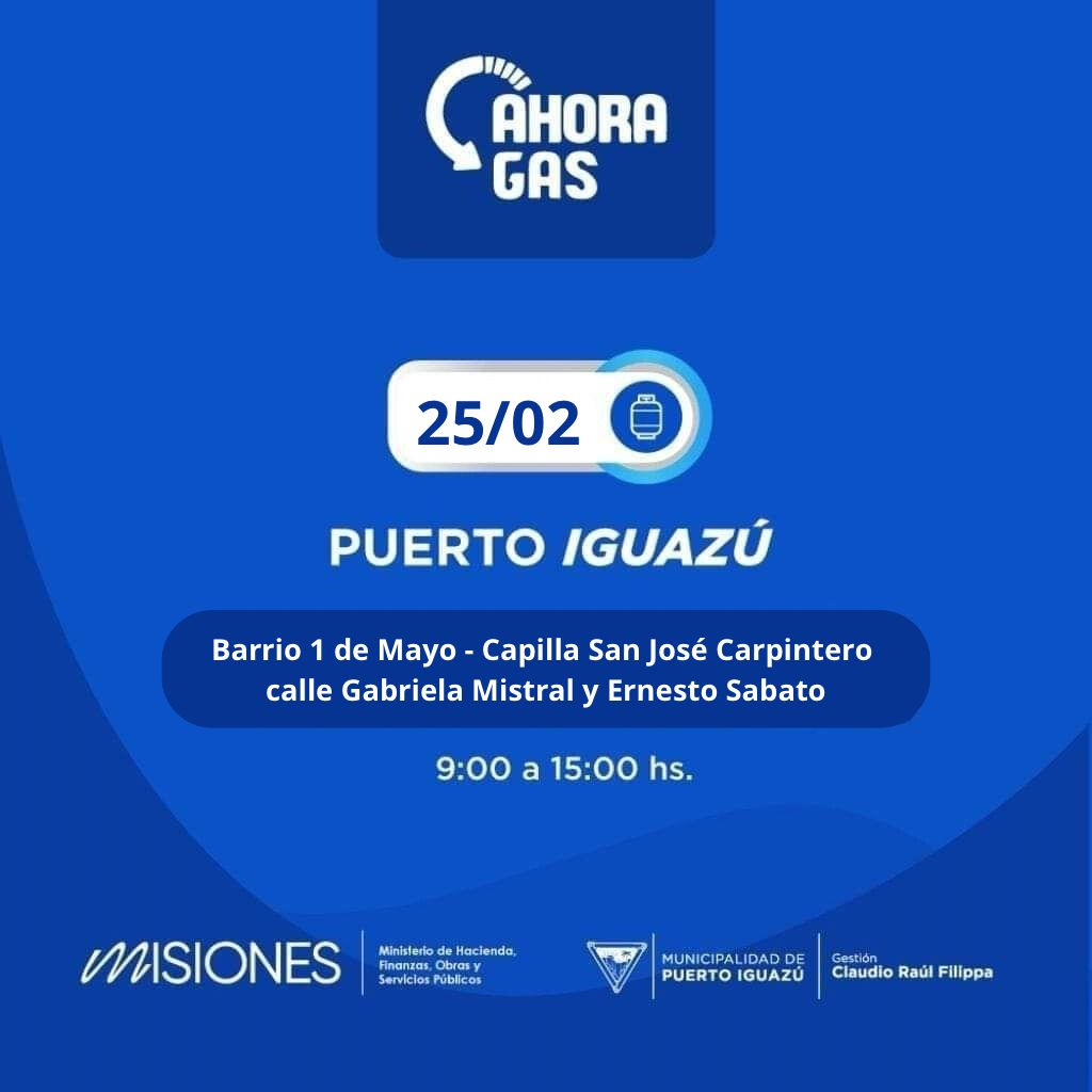¡No faltes! Este sábado 25 de febrero, desde temprano, en la Capilla San José Carpintero, podrás adquirir tu garrafa de gas a un precio accesible gracias al programa Ahora Gas .
