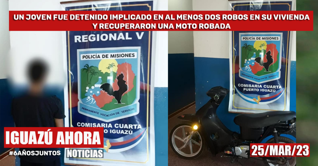 UN JOVEN FUE DETENIDO IMPLICADO EN AL MENOS DOS ROBOS EN SU VIVIENDA Y RECUPERARON UNA MOTO ROBADA