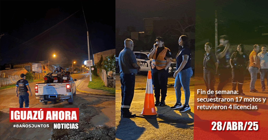 Durante el fin de semana, la Dirección Municipal de Tránsito llevó adelante distintos operativos de control que arrojaron como resultado la labra de ocho actas de infracción, la retención de dos licencias de conducir y el secuestro de tres motocicletas y un automóvil. Las acciones se desarrollaron con el objetivo de fortalecer la seguridad vial […]