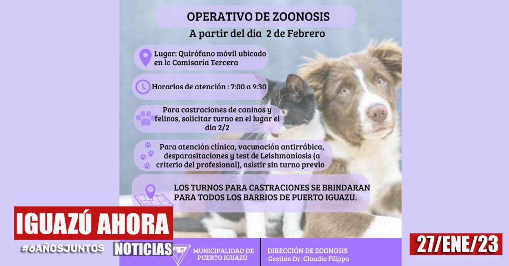 #2000Hectáreas Desde la Dirección de Zoonosis continúan trabajando en el cuidado y atención de tus mascotas. A partir del día 2 de Febrero, estarán atendiendo con el quirófano móvil en la Comisaria Tercera de nuestra ciudad (ubicada en las 2000 hectáreas). Los turnos para castración de caninos y felinos se otorgarán personalmente, para los vecinos […]