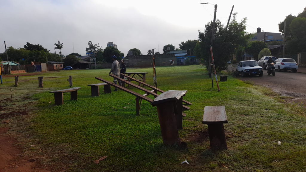 La Municipalidad a través de la secretaria de Obras y Servicio Públicos se encuentran trabajando en la Re funcionalización del espacio recreativo de la plaza de Boca River o River – Boca del barrio de Villa Tacuara.