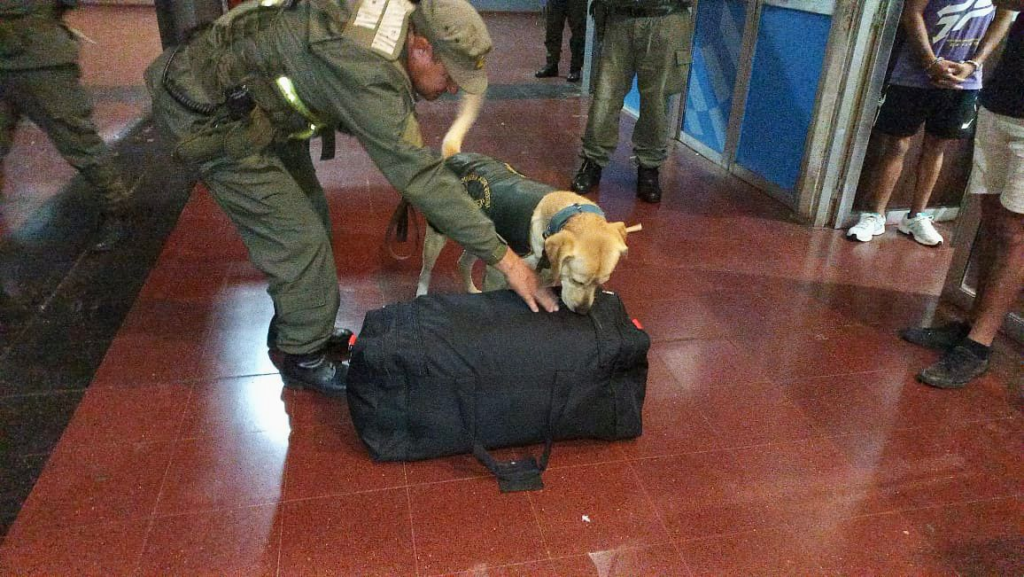 Efectivos dependientes del Escuadrón 50 “Posadas” realizaban tareas de patrullaje preventivo en los andenes de la Terminal de Ómnibus de la ciudad capital de Misiones con el apoyo del can antinarcóticos “Loki”, el cual se exaltó al olfatear un bolso perteneciente a un pasajero que se iba a embarcar en un transporte público de pasajero.